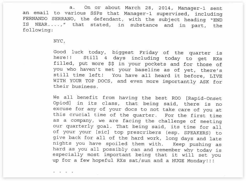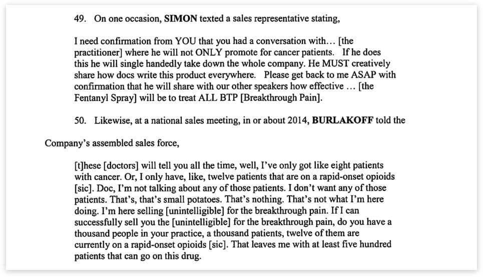 Evidence against Insys executives detailing directives to sales reps for promoting Subsys to doctors (Source: U.S. District Court, District of Massachusetts)